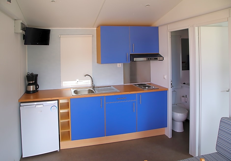 This mobile home features 2 bedrooms, a seating area with a sofa and 1 bathroom with a shower. The fully equipped kitchenette has a stovetop, a refrigerator and kitchenware. This mobile home features a dining area, heating, a TV and an outdoor dining area. The unit has 3 beds.